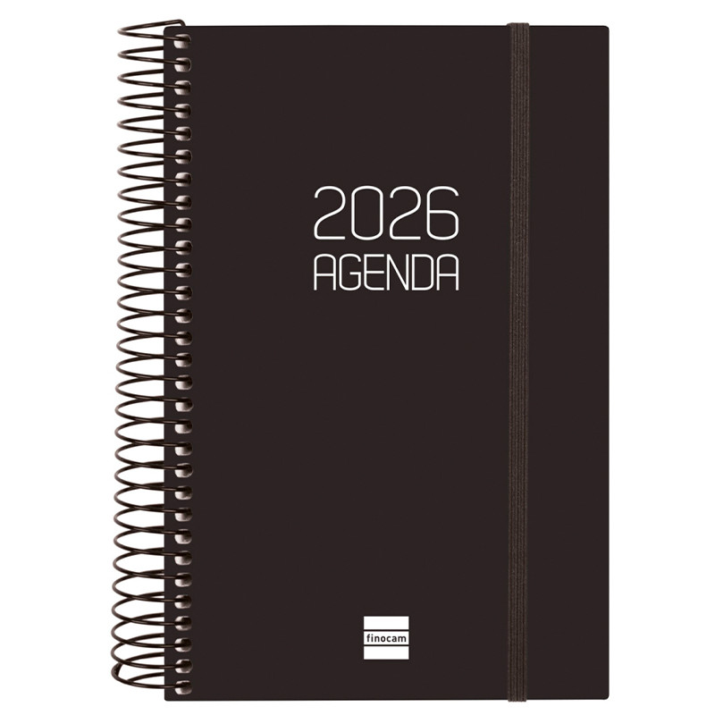 Agenda espiral finocam opaque e5, 117x181 mm. día página, tapas de polipropileno opaco, negro