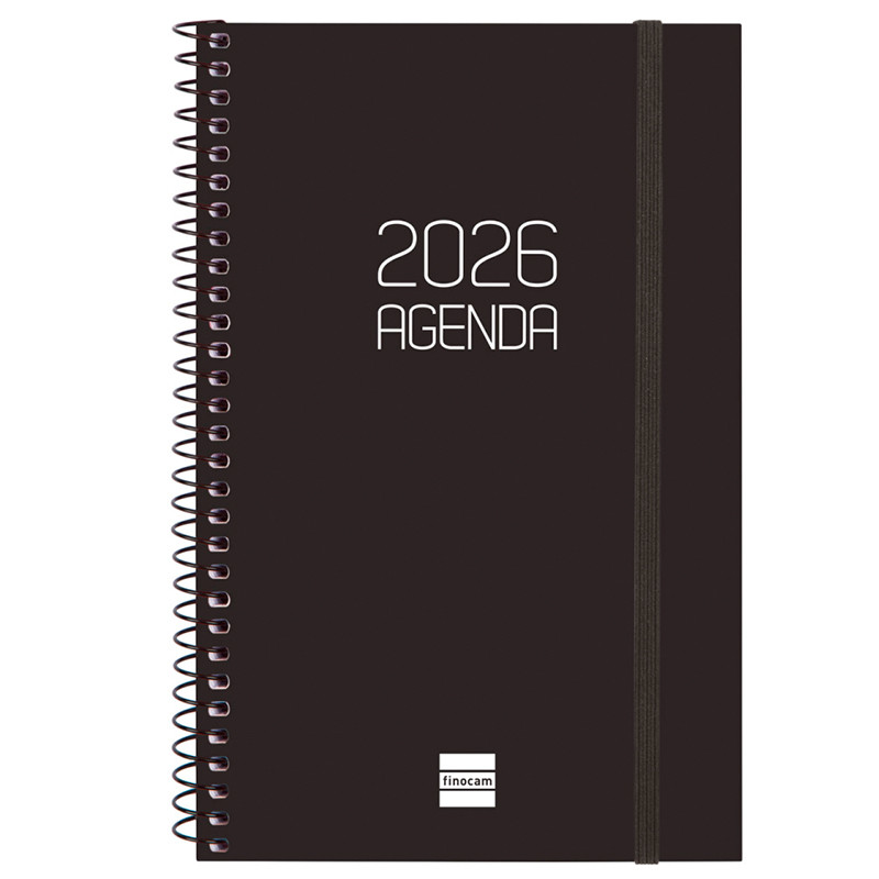 Agenda espiral finocam opaque e5, 117x181 mm. semana vista horizontal, tapas de polipropileno opaco, negro