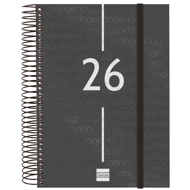 • AGENDA ENCUADERNADA EN ESPIRAL SIMPLE METÁLICA FINOCAM YEAR E10, TAPAS DE POLIPROPILENO TRASLÚCIDO.