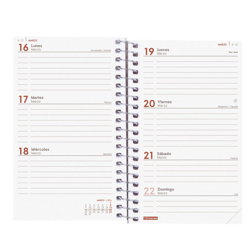 • AGENDA ENCUADERNADA EN ESPIRAL SIMPLE METÁLICA FINOCAM YEAR E3, TAPAS DE POLIPROPILENO TRASLÚCIDO.