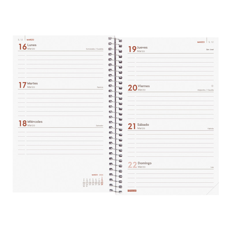 • AGENDA ENCUADERNADA EN ESPIRAL SIMPLE METÁLICA FINOCAM YEAR E5, TAPAS DE POLIPROPILENO TRASLÚCIDO.