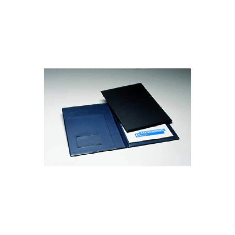 CARPETA DE CONGRESOS EN P.V.C. DE COLOR NEGRO CON BOLSILLO INTERIOR Y PORTATARJETA INDIVIDUAL. LOMO INTERIOR CON PORTABOLÍGRAFOS. INCORPORA BLOCK DE NOTAS DE 40 HOJAS. MEDIDAS ALTOxANCHO: 330x240 MM.