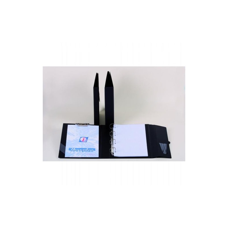 CARPETA DE 4 ANILLAS MIXTAS DE 25 MM. CARPETA QUE INCORPORA MECANISMO MINICLIP EN EL INTERIOR DE LA SOLAPA IZQUIERDA Y POSICIÓN PARA DOS PIEZAS DE ESCRITURA EN LA SOLAPA DE CIERRE QUE SE AJUSTA CON LA LENGÜETA. MEDIDAS CARPETA EN DIN A-4 ALTOxANCHOxLOMO: 335x270x30 MM.