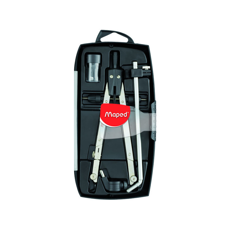 COMPÁS CON BIGOTERA DE METAL PARA MINAS DE 2 MM. ADAPTADOR UNIVERSAL Y ESTUCHE DE TORNILLOS. CON ALARGADERA.