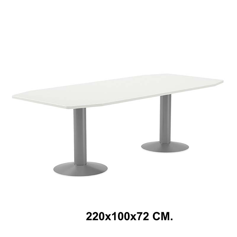 Mesa de reunión con estructura de acero rocada meeting, 220x100x72 cm. blanco / aluminio