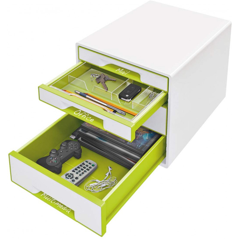 Módulo leitz wow cube, 363x287x270 mm. 4 cajones (2 grandes y 2 pequeños), verde/blanco