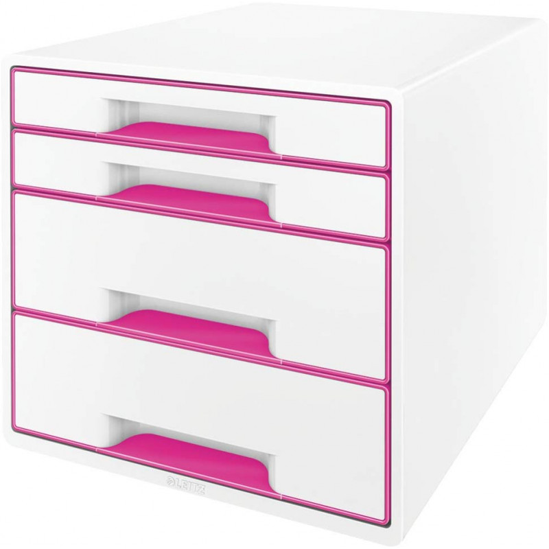 Módulo leitz wow cube, 363x287x270 mm. 4 cajones (2 grandes y 2 pequeños), fucsia/blanco