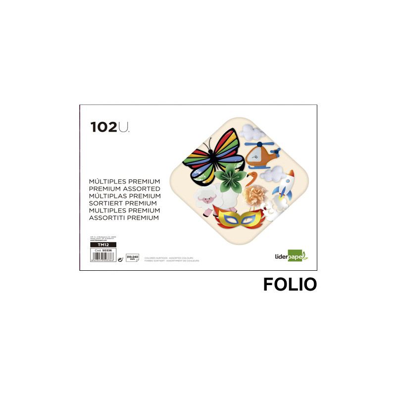 CONTENIDO: 10 CARTULINAS, 4 CARTULINAS METALIZADAS, 10 HOJAS DE PAPEL DE CELOFÁN, 10 HOJAS DE PAPEL CHAROL, 10 HOJAS DE PAPEL CRESPÓN, 50 HOJAS DE PAPEL SEDA, 4 HOJAS DE CARTÓN ONDULADO, 4 PLANCHAS DE FIELTRO Y 4 PLANCHAS DE GOMA EVA EN COLORES SURTIDOS.