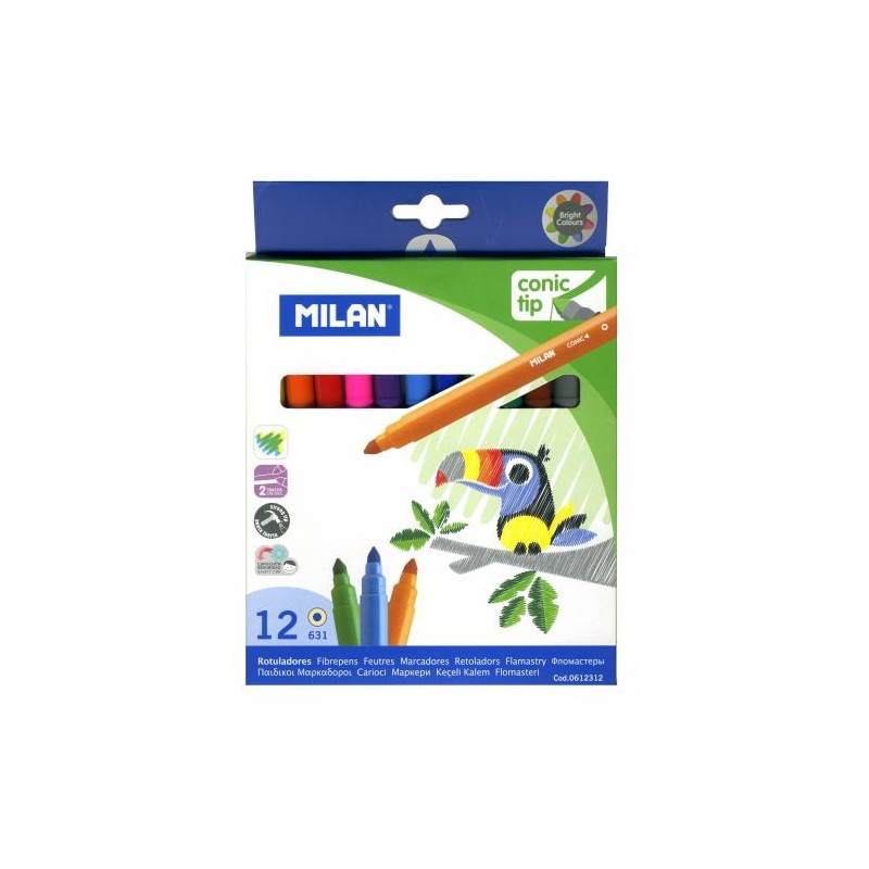 ROTULADOR ESCOLAR MILAN CONIC TIP, COLORES SURTIDOS, ESTUCHE DE 12 UDS.