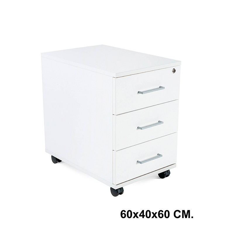 Buck móvil rocada store, 60x40x60 cm. 3 cajones, blanco / blanco