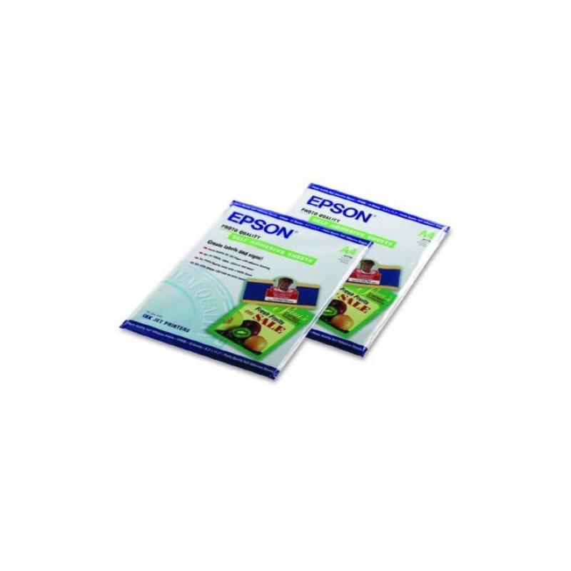 PAQUETE DE 10 HOJAS DE PAPEL EPSON AUTOADHESIVO ESPECIAL HQ/ PHOTO QUALITY SELF ADHESIVE PAPER EN DIN A-4 DE 167 GRS. PAPEL BLANCO MATE. RESOLUCIÓN 1.440 PPP. CALIDAD FOTOGRÁFICA. IDEAL PARA ETIQUETAS, PEGATINAS, MINIPOSTERS, ETC. MEDIDAS FORMATO DIN A-4 ANCHOxALTO: 210x297 MM.
