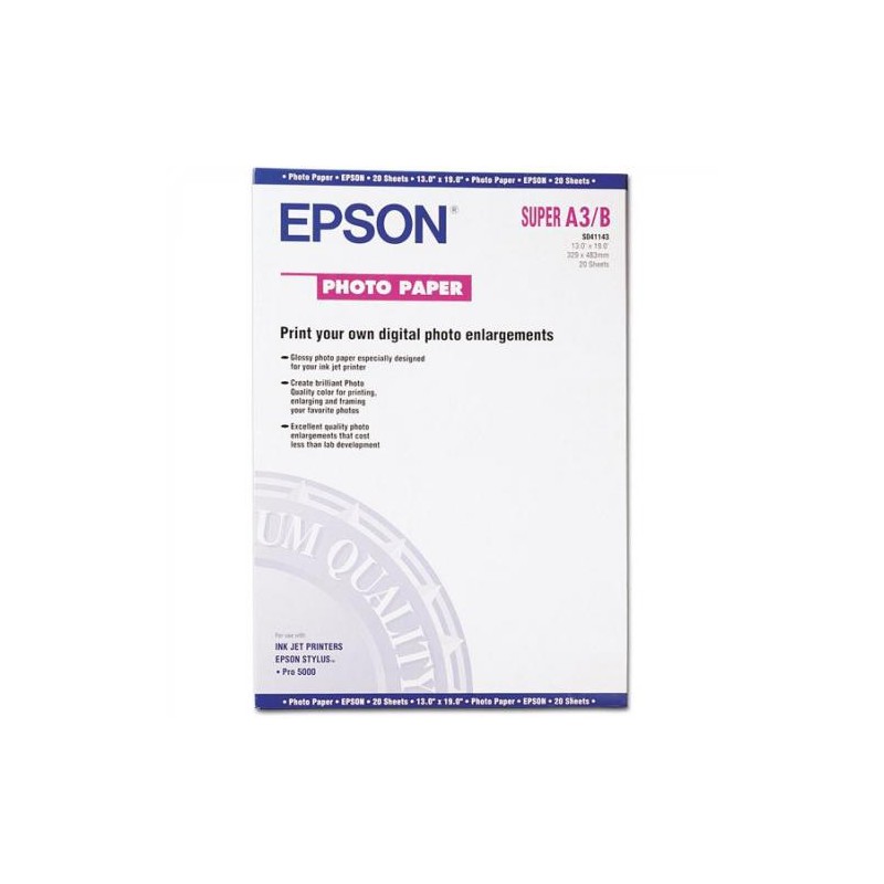 Paquete de 20 hojas de epson photo glossy paper en din a-3+ de 141 grs.