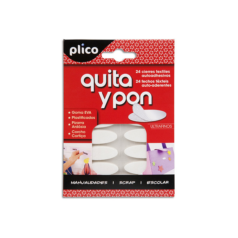 VELCRO AUTOADHESIVO PLICO QUITA Y PON, OVALADO, 35x12 MM. BLANCO, BLÍSTER DE 24 UDS.