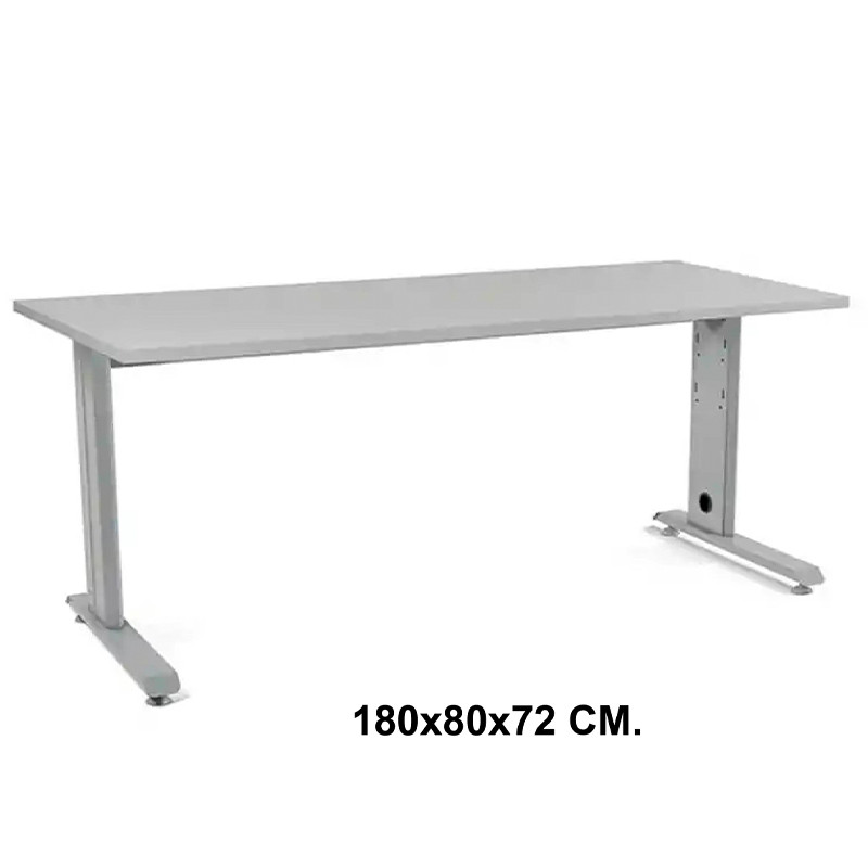 Mesa de oficina rocada metal, 180x80x72 cm. gris / aluminio