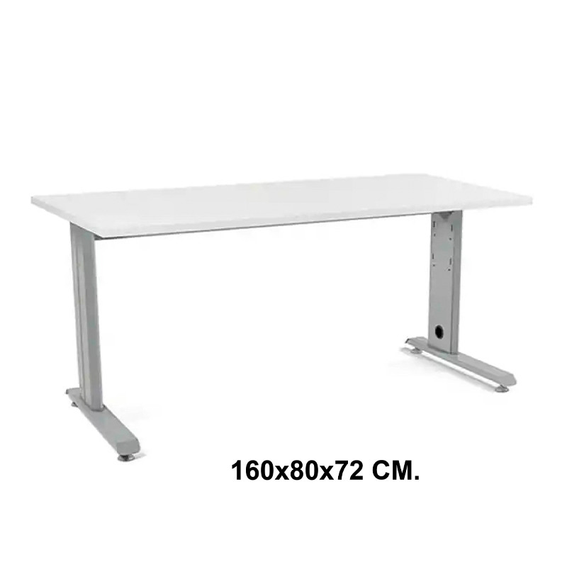 Mesa de oficina rocada metal, 160x80x72 cm. blanco / aluminio