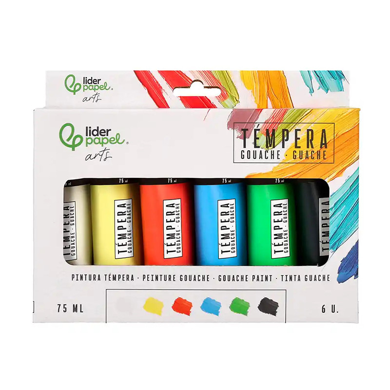 CAJA DE 6 COLORES SURTIDOS: BLANCO TITANIO, AMARILLO LIMÓN, ROJO, AZUL CYAN, VERDE PERMANENT Y NEGRO MARFIL.