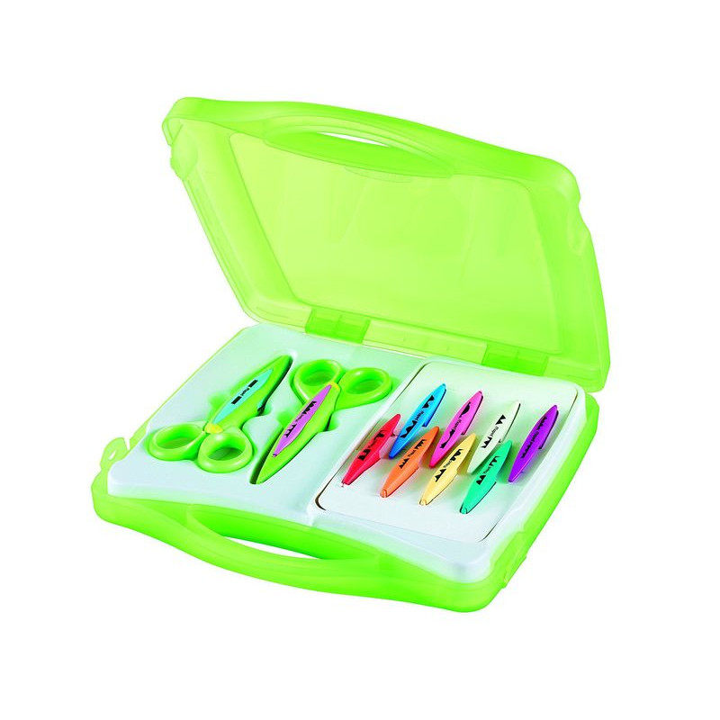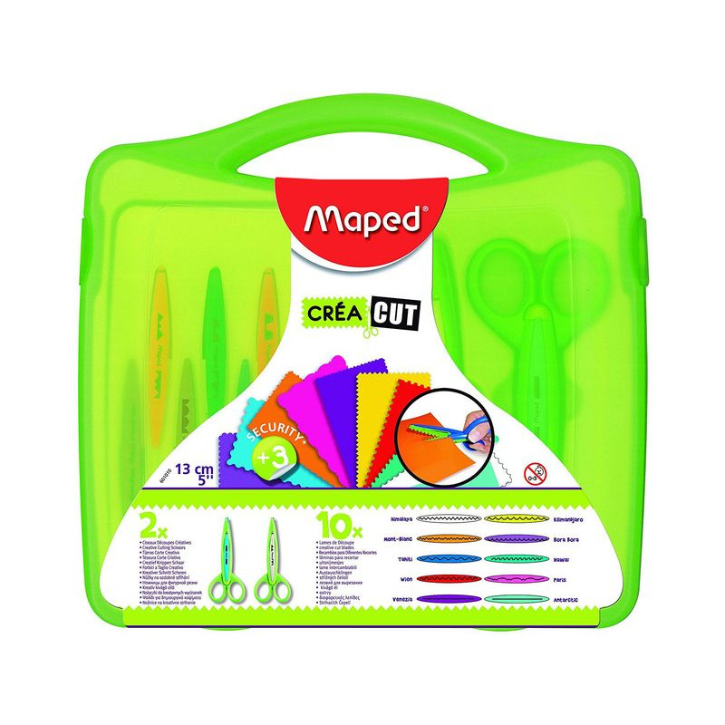 BLISTER CON UNA TIJERA DE 16 CM. PARA RECORTAR DE MODO CREATIVO TODO TIPO DE PAPEL DE 40 A 250 GRS. CON CUCHILLAS INTERCAMBIABLES PARA REALIZAR RECORTES DIFERENTES. VÁLIDA PARA DIESTROS Y ZURDOS, ADULTOS Y NIÑOS. SUS HOJAS DE PLÁSTICO CON FIBRA DE VIDRIO ASEGURAN CALIDAD Y SEGURIDAD MÁXIMAS. NO CORTAN CABELLO NI TELA. CONTENIDO DEL BLISTER: 1 TIJERA + 10 CUCHILLAS + 1 FOLLETO CREATIVO.